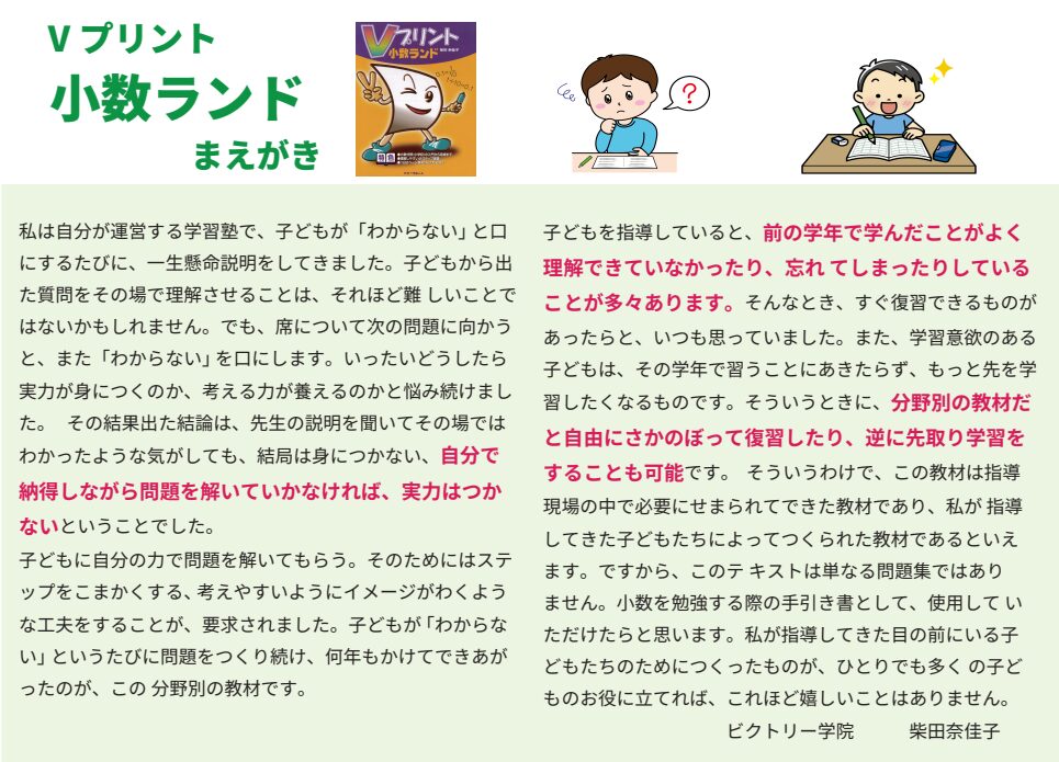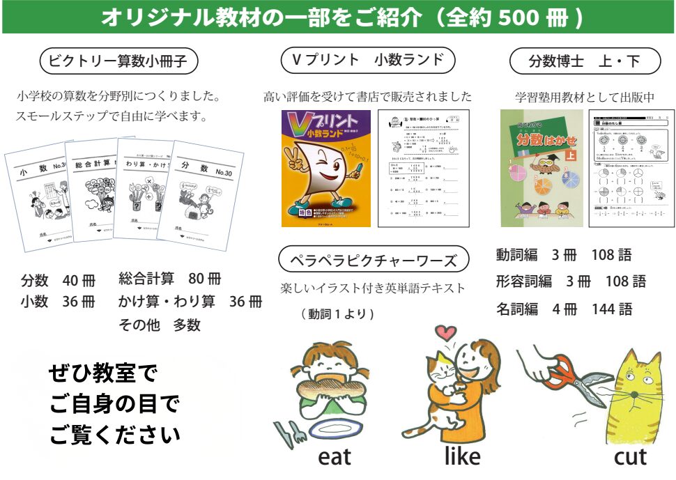 - 問題集を解くのはもちろん、ビクトリー学院独自の教材やパソコンを使ったオリジナルの教材があり子供たちは毎回楽しく勉強できたと言って帰ってきます。